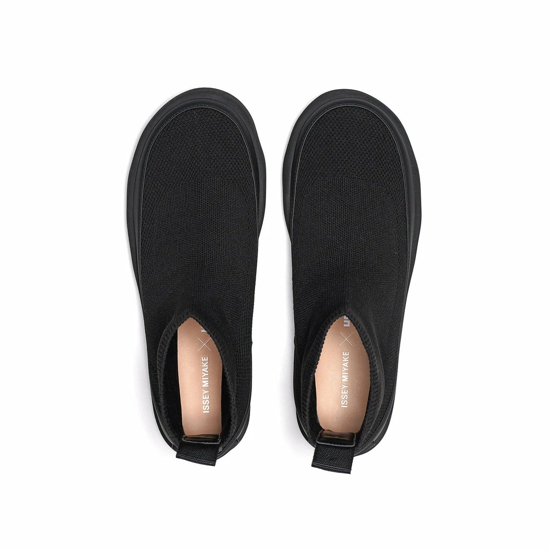 The Bounce Fit Boot is aimed to reflect one of Issey Miyake’s core concepts – comfort. This ankle boot features a chunky outsole that is both light and flexible, and a textile upper. This style features tonal leather detailing, a pull tab at the heel for easy dressing, and features an Issey Miyake logo at the heel.