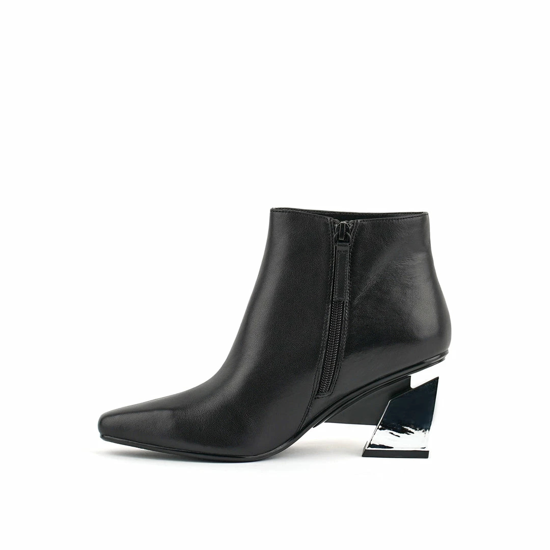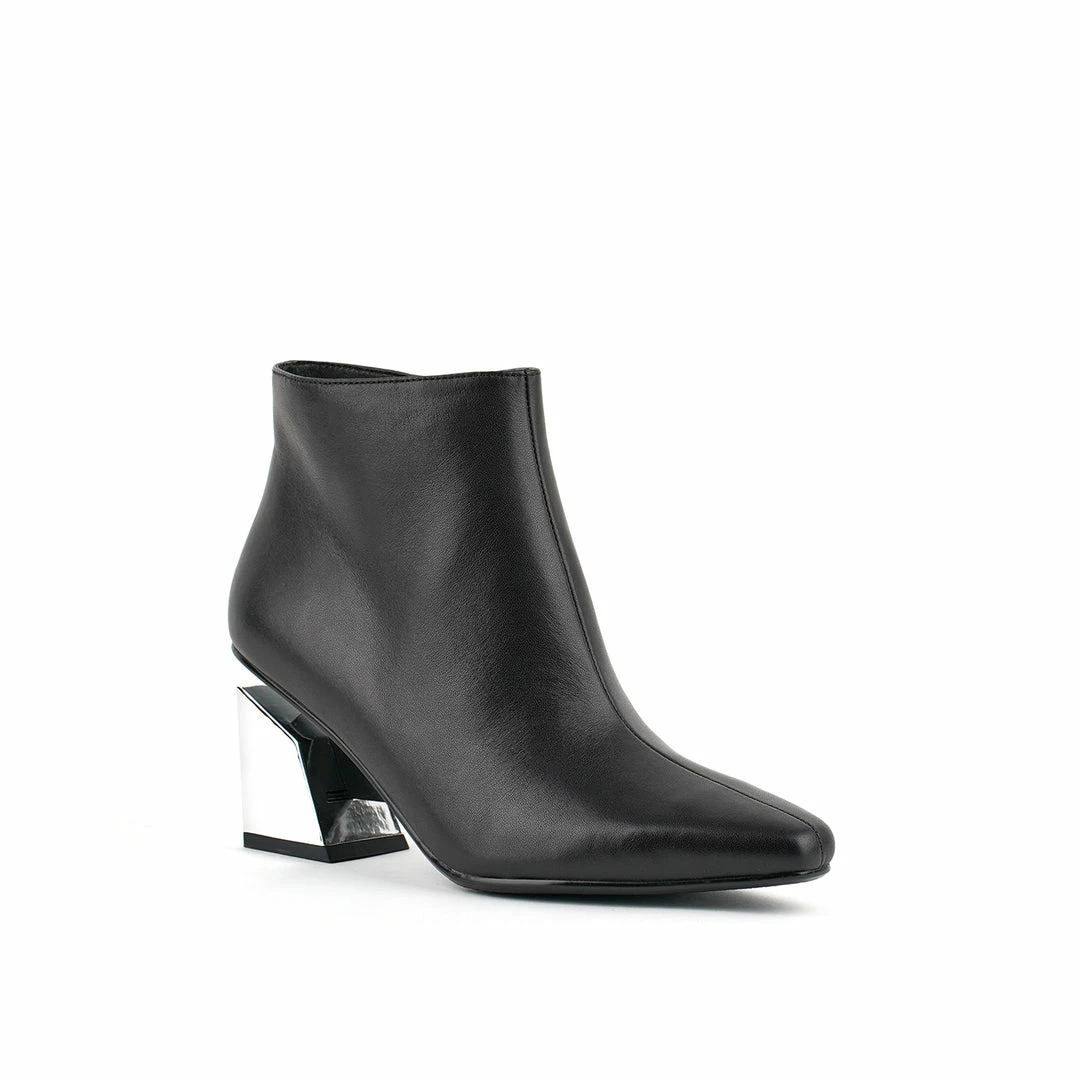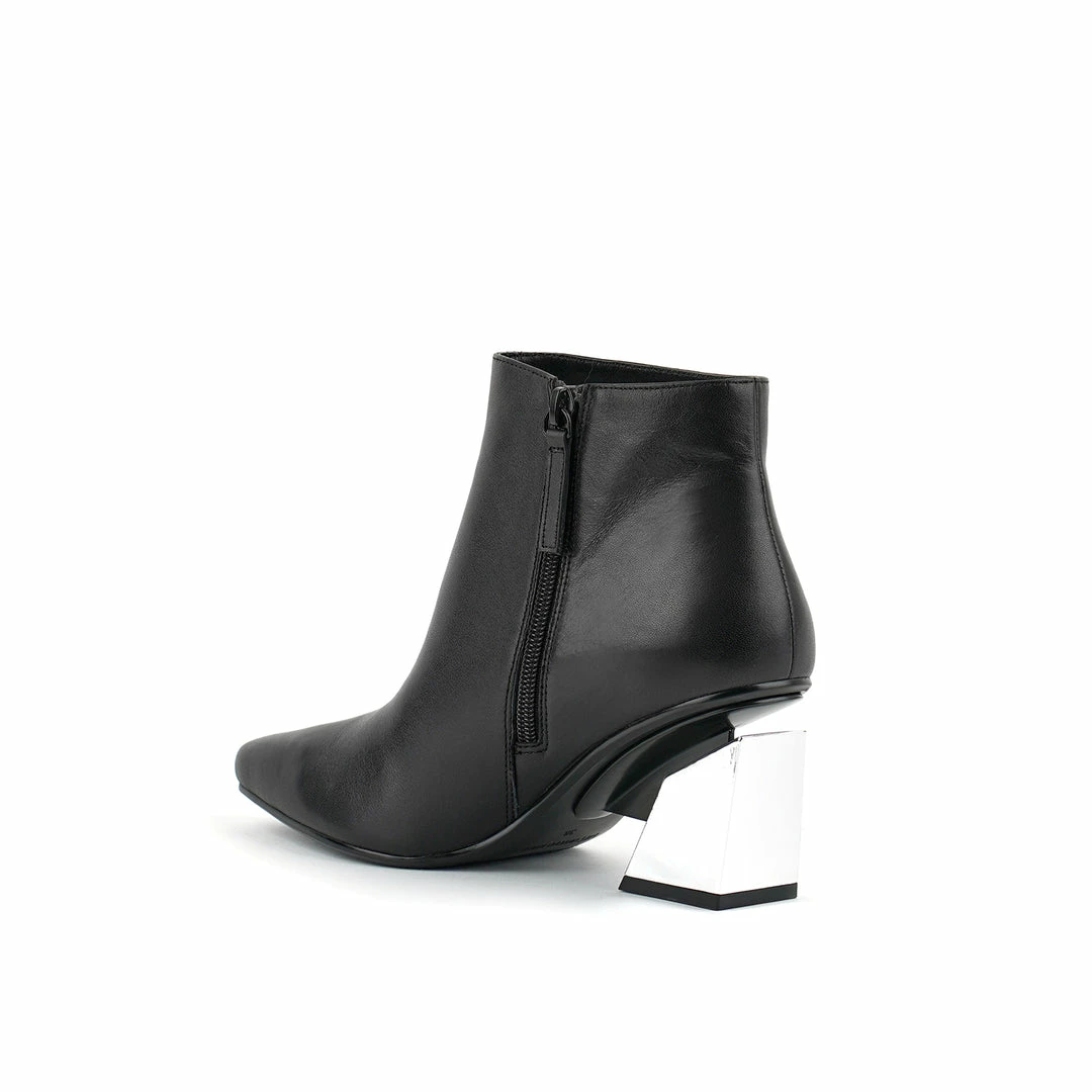 The Arix Bootie is a clean leather bootie on-top a stone-like mid-height heel. Its distinctive geometric heel makes it the ideal style to elevate any look. This style is part of the Art Group collection, representing simple upper silhouettes combined with carefully designed heels that speak to United Nude’s bold aesthetic.
