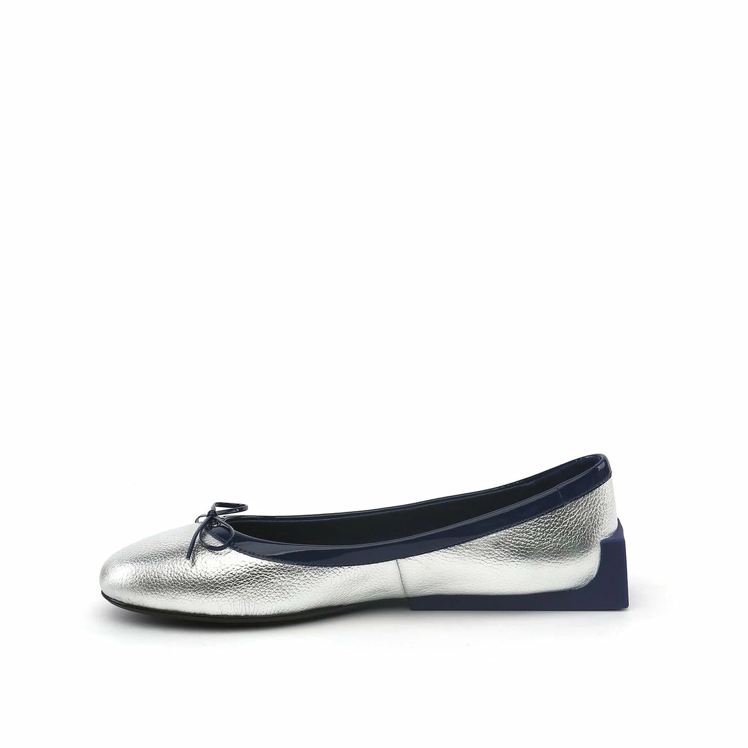 The Block Ballet is a classic ballet flat punctuated by a geometric block heel.