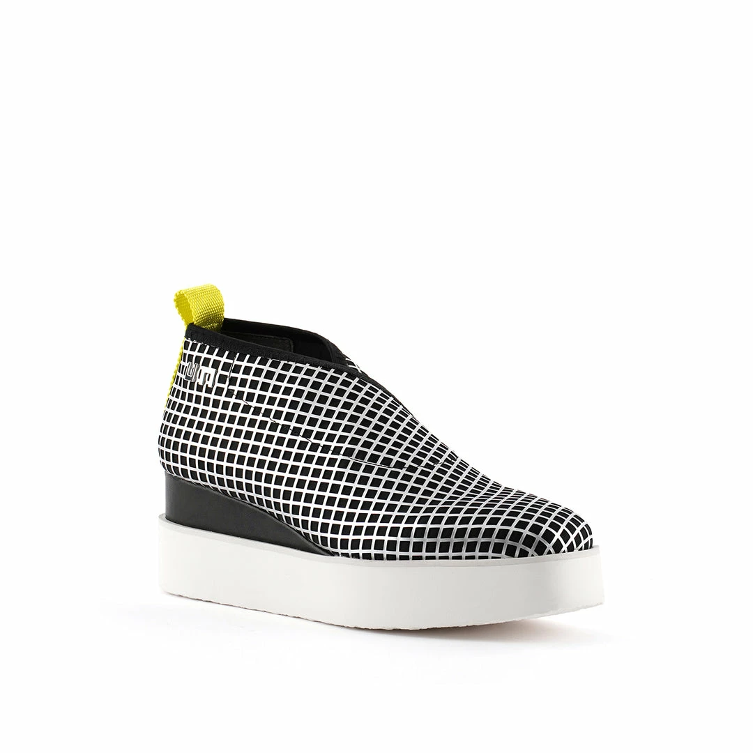 The Fold Stella Lo is an easy slip-on style that combines UN’s elasticized upper with a soft square toe shape, leather-wrapped wedge, and textured rubber sole. This style is the ultimate combination of comfort and smart design.