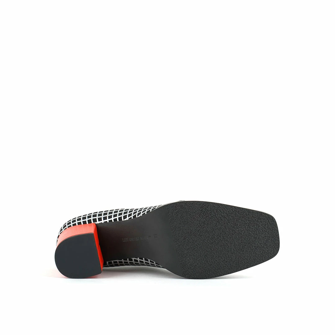 The Fold Stella Mid is an easy slip-on style with a soft square toe and an asymmetric design on a block heel. This style is the ultimate combination of comfort and smart design, using elasticized fabric and monochromatic embroidery for a modern design.