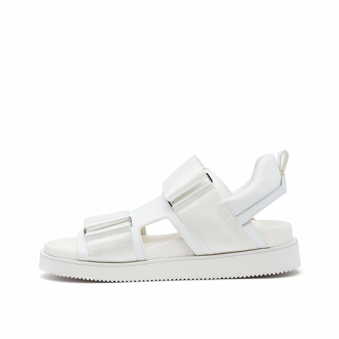 The Geo Sandal Mens is a leather sandal designed by paring down a simple sport runner silhouette. The bold double straps outfitted with velcro, soft padded counter strap and contoured footbed take the form of a stylish sandal with the comfort of a sneaker.