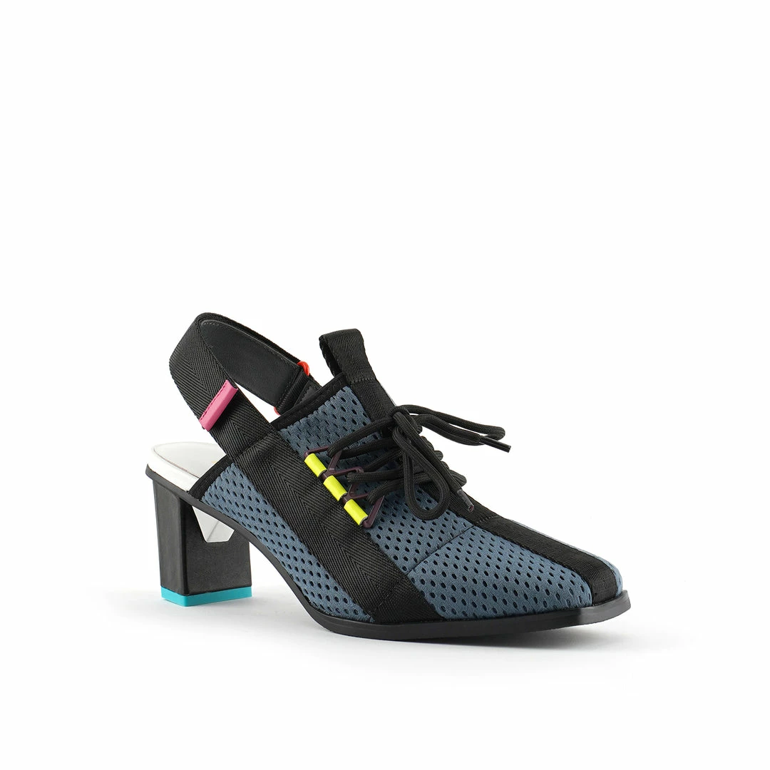 The Lora Mid is a hybrid sneaker-heel featuring a pointy toe, mesh upper and stretch closure at the heel. This mule combines a trendy style with sporty elements.