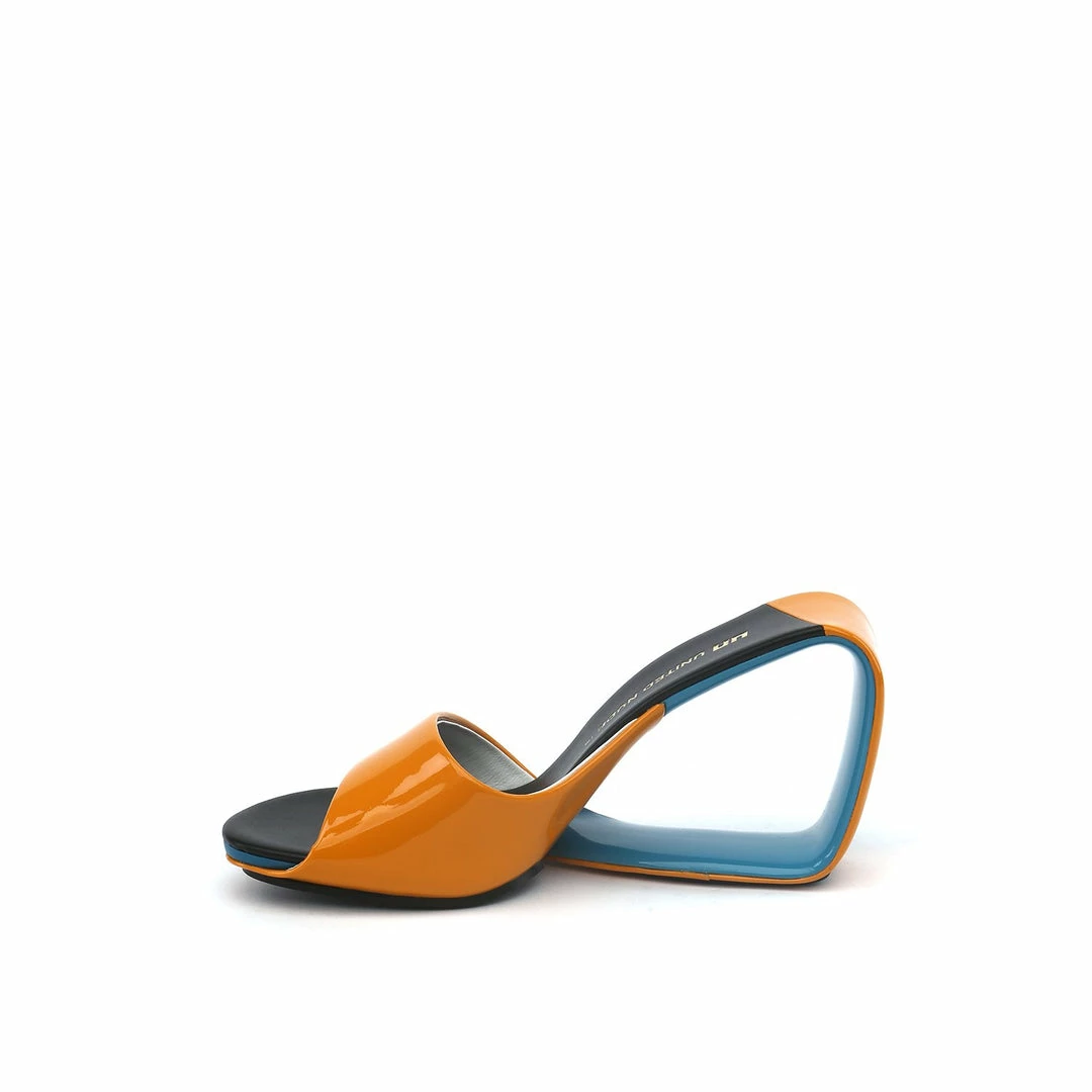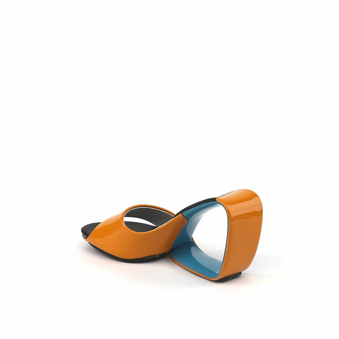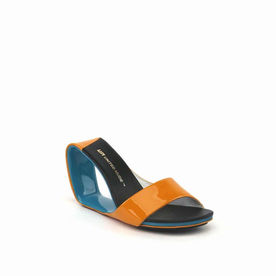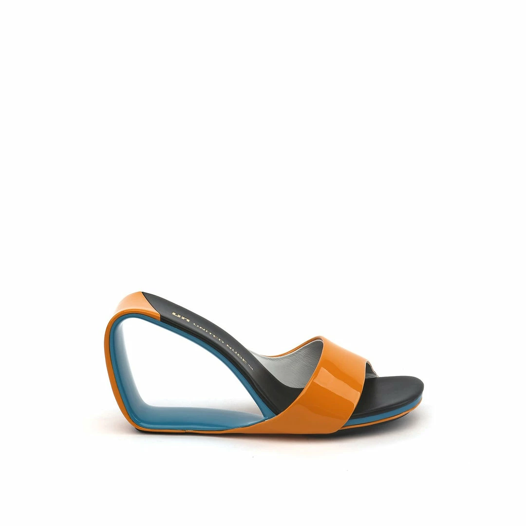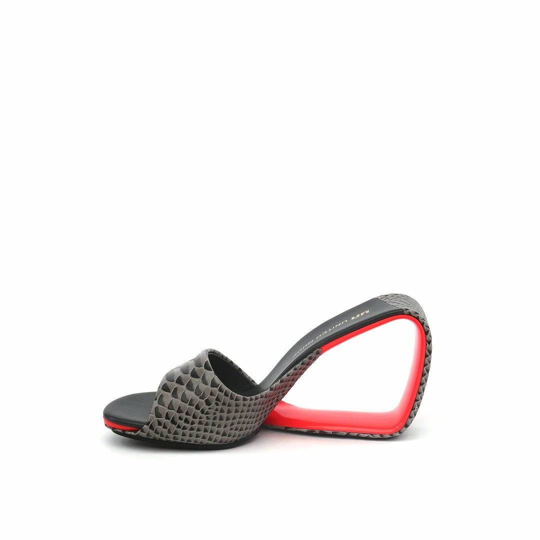 The Mobius Hi is a lightweight, open-wedge high heel made from fiber-reinforced nylon. A single band forms the sole, heel, footbed and upper of the shoe.