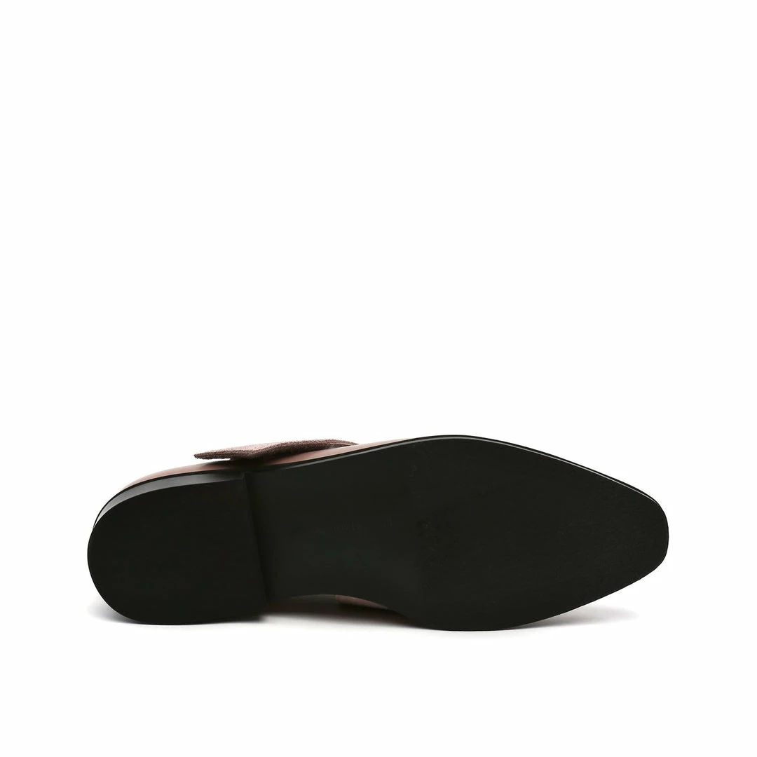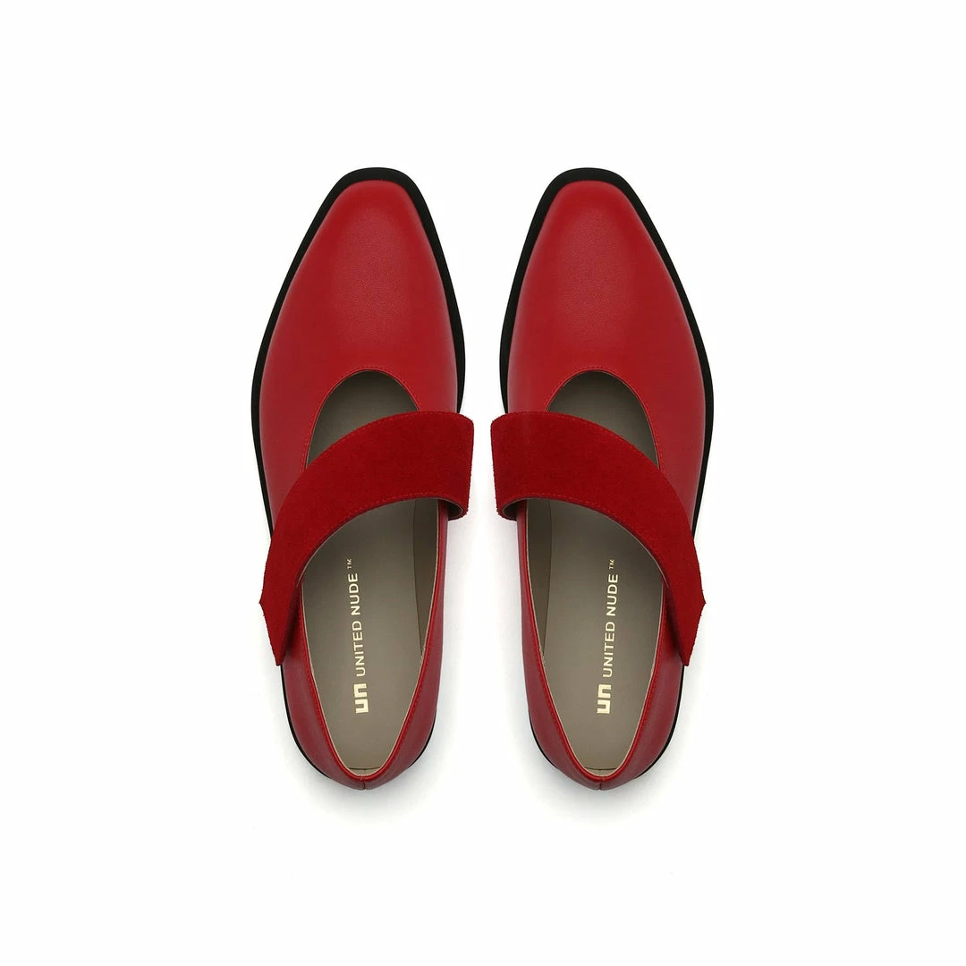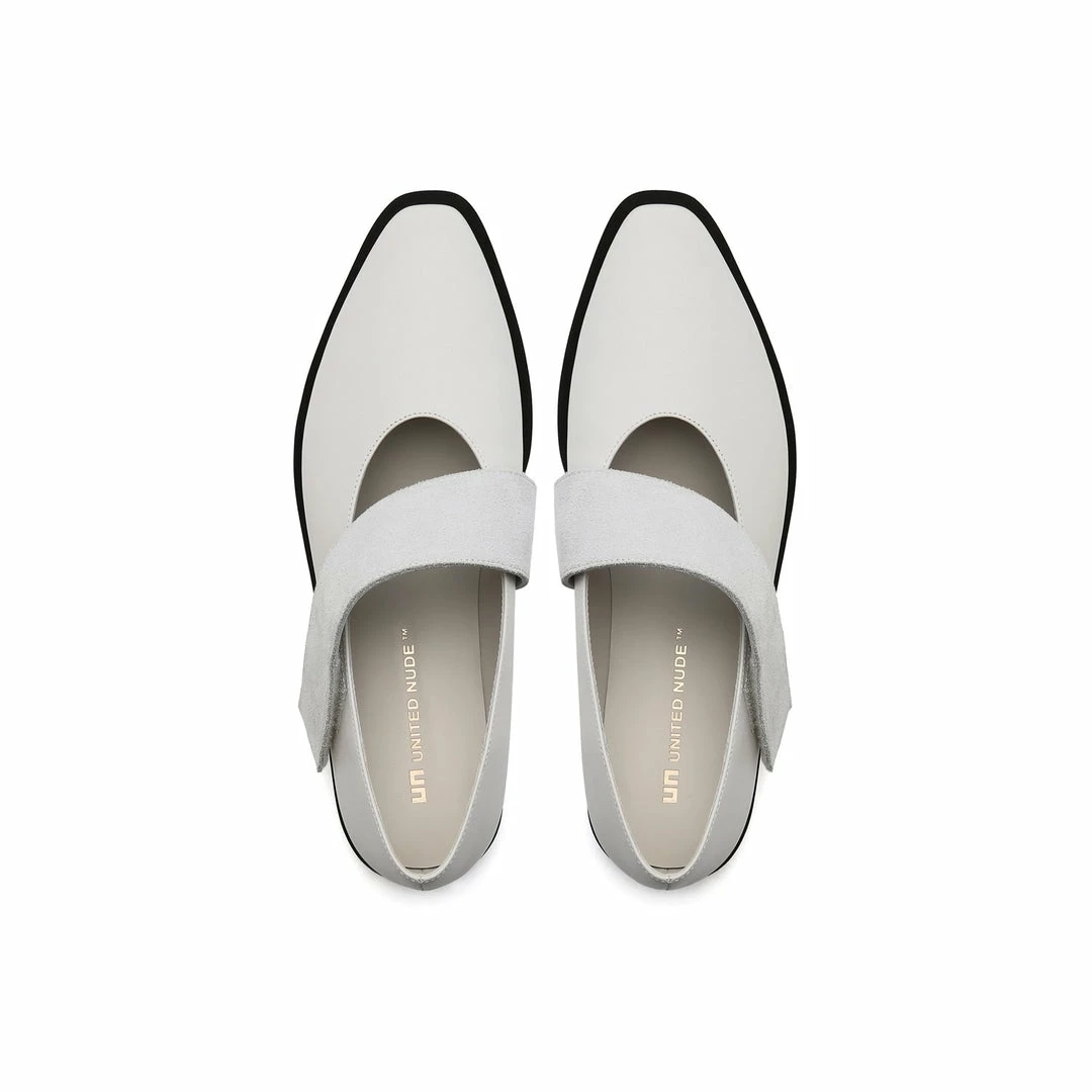 The Pure Mary is a modern leather crafted Mary jane with a broad contrasting suede strap that fastens diagonally over the foot for a secure fit.