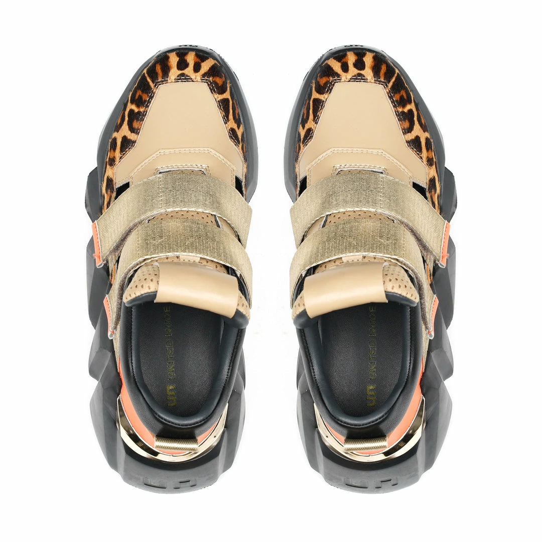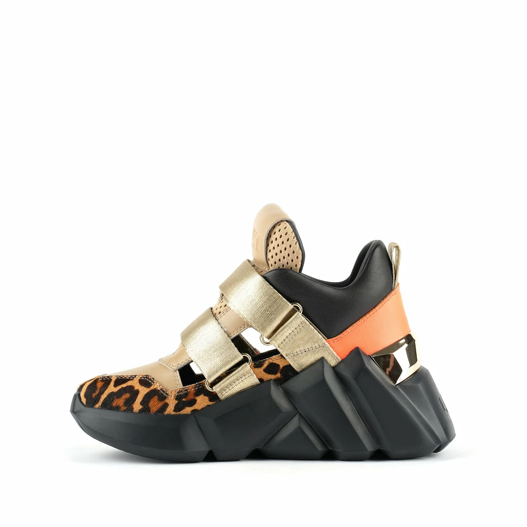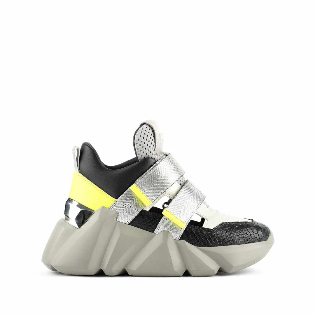 The Space Kick Summer is a cutout sneaker with a statement wedge sole. The chunky EPR outsole soars into the double velcro enclosure upper with breathable cutout details.
