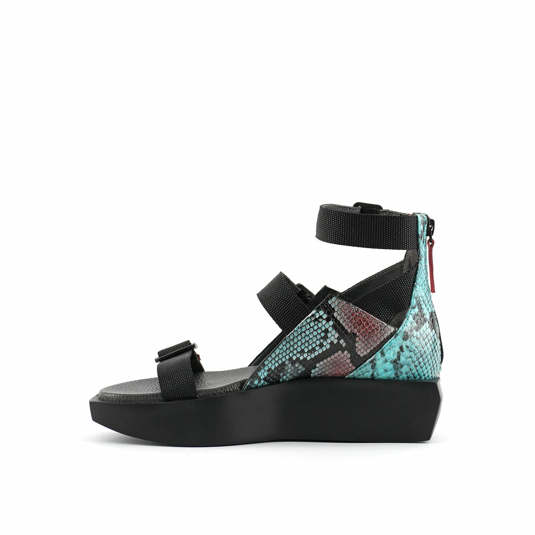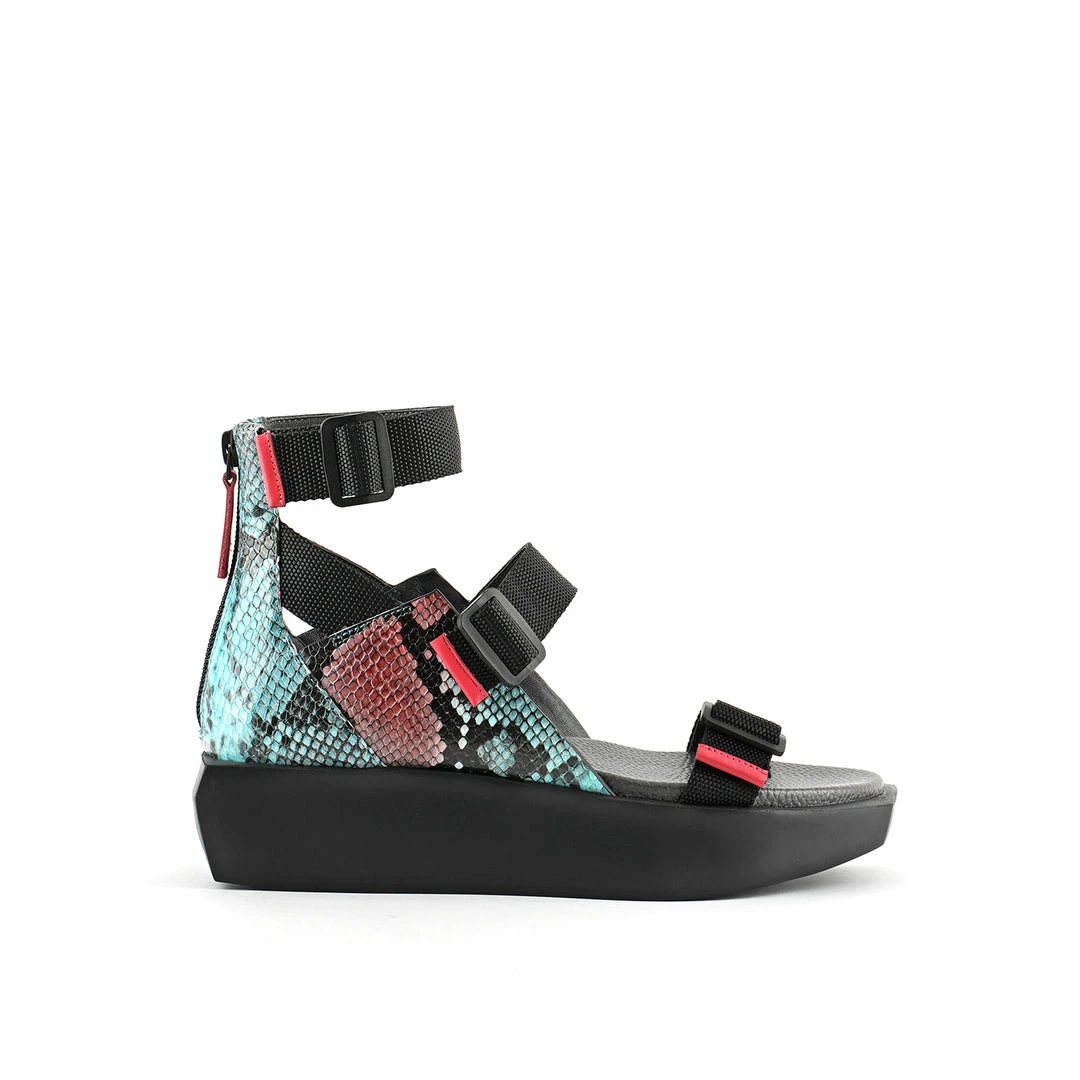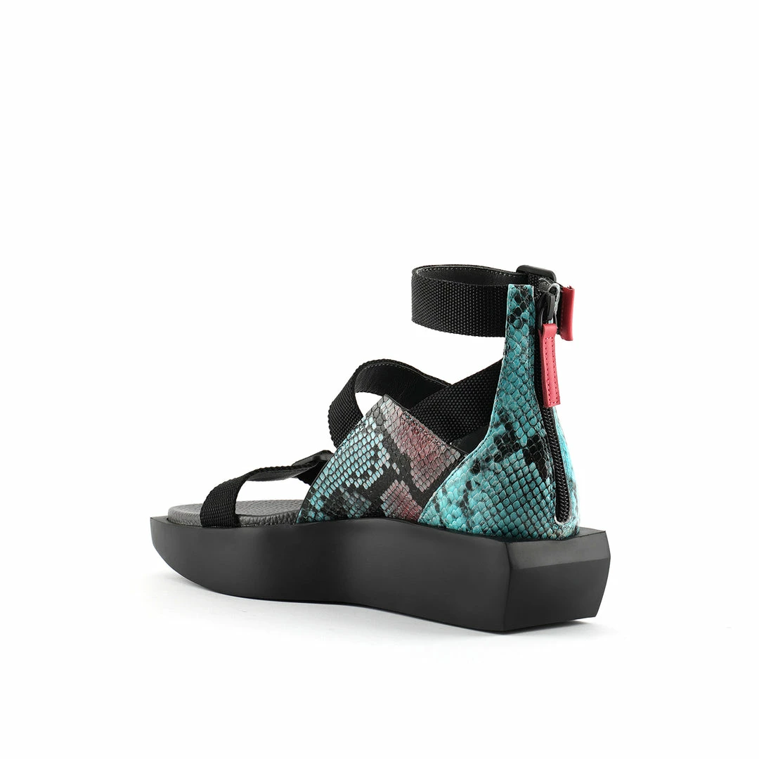 The Su Lo is a flatform sandal with a blocky angular base, adjustable nylon straps, a leather upper and a zipper at the heel. The EPR outsole and footbed adds a sporty bounce to your walk.