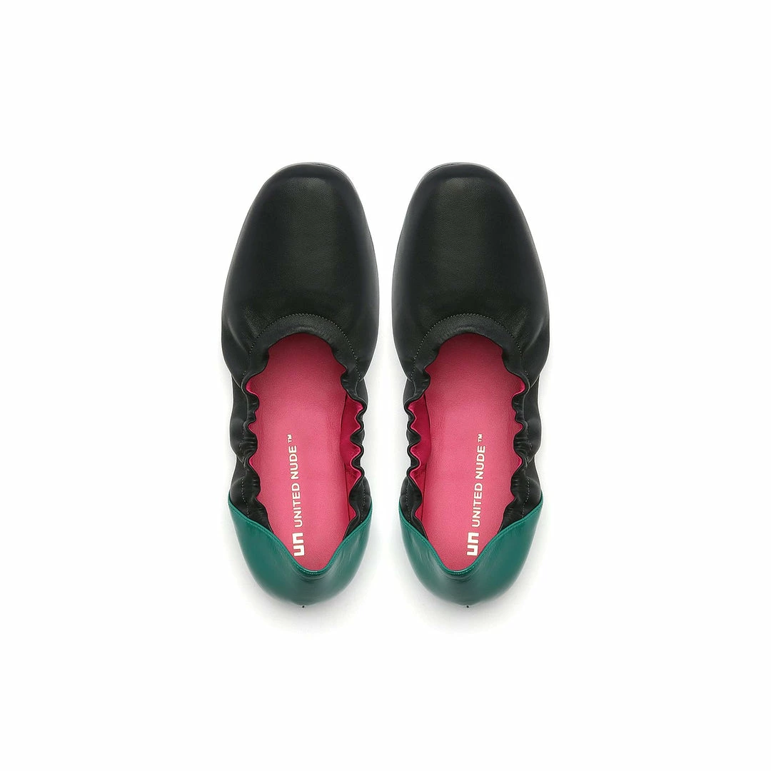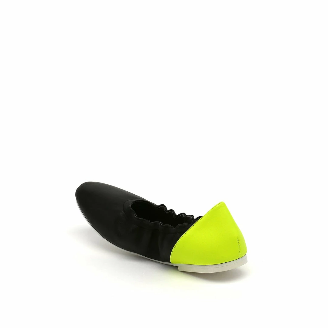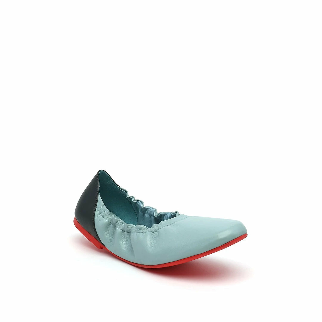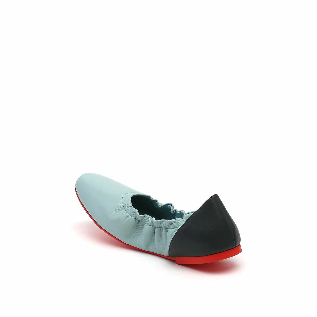 The Delta Ballet is a squared toe, bicolor flat constructed with buttery-soft leather.