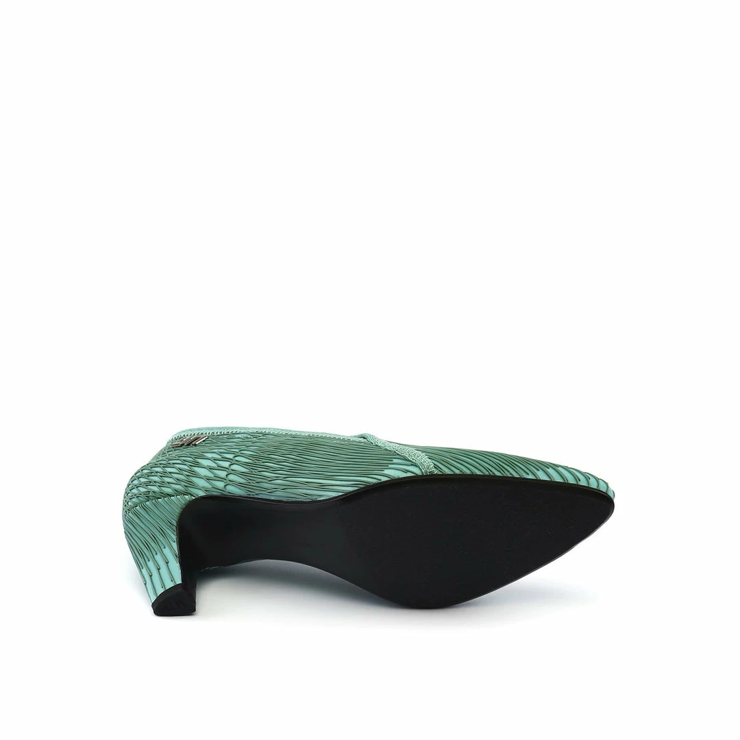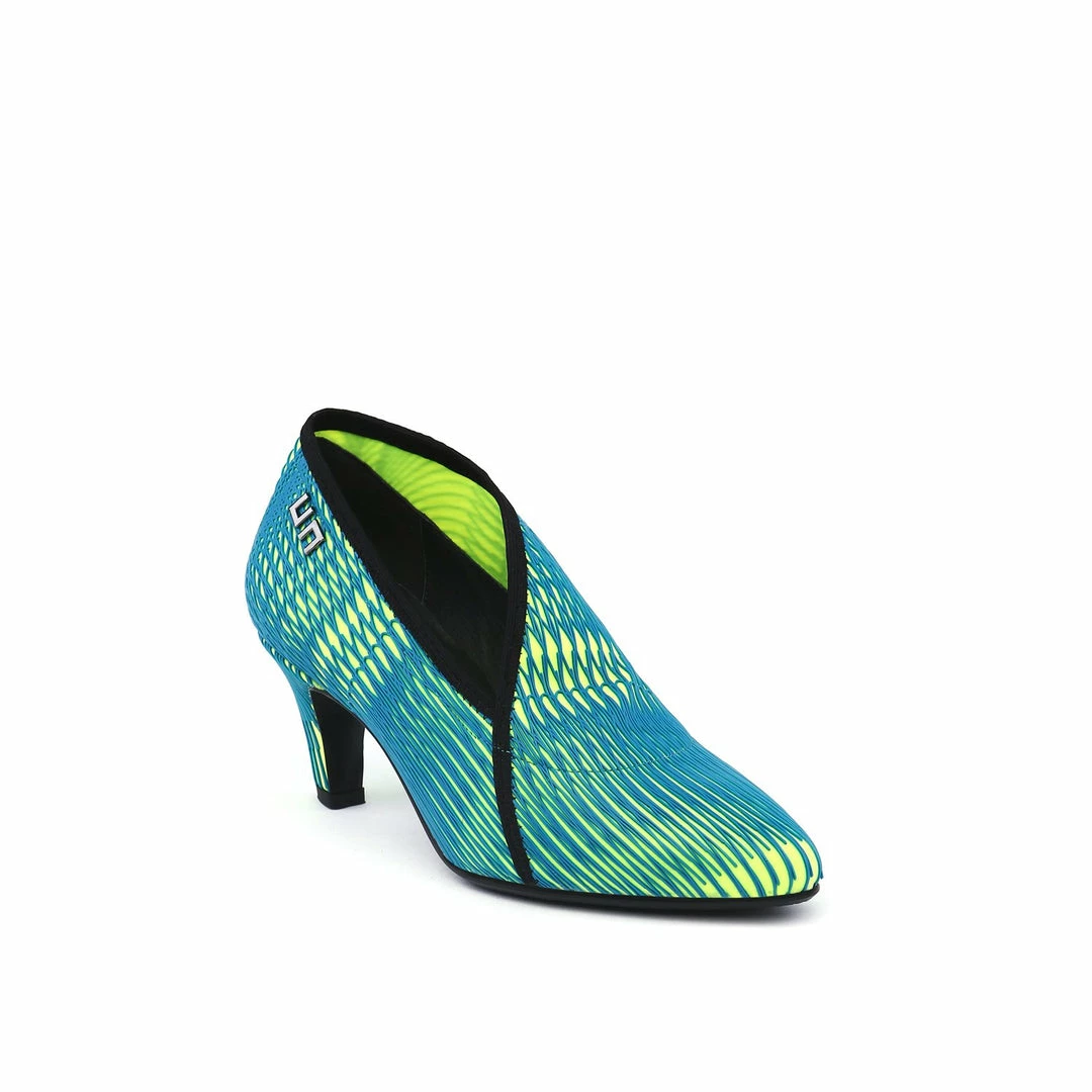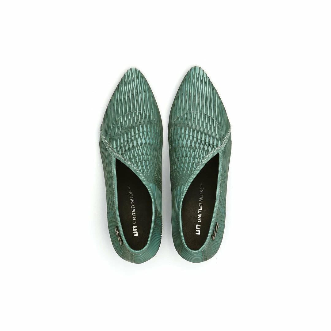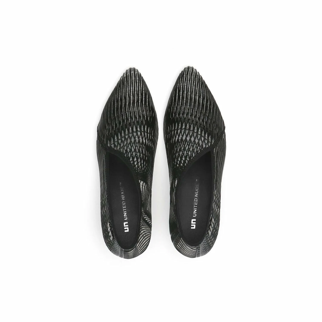 The Fold Lite Mid is a mid-heel ankle bootie with a soft almond toe and asymmetrical top line.