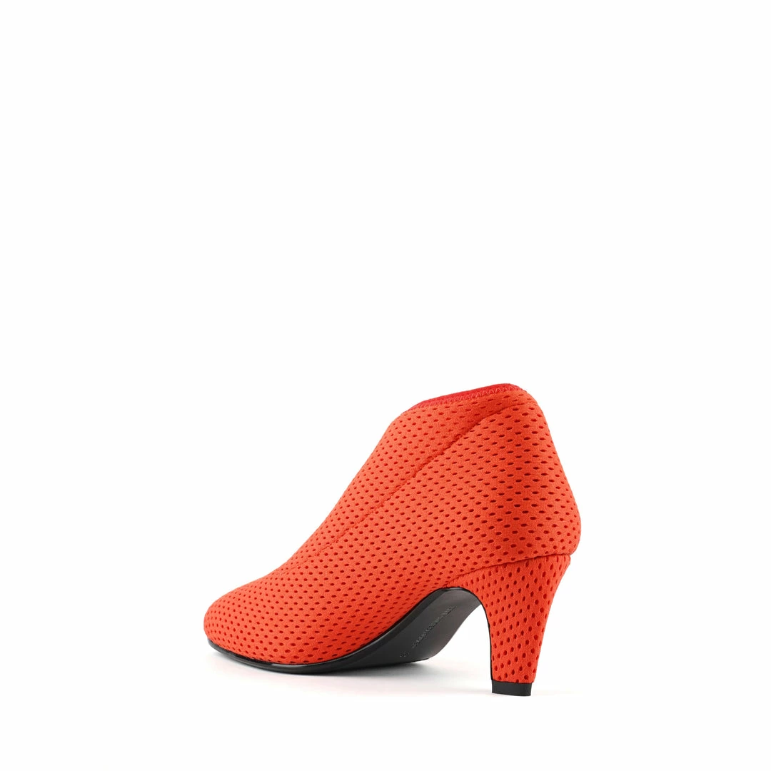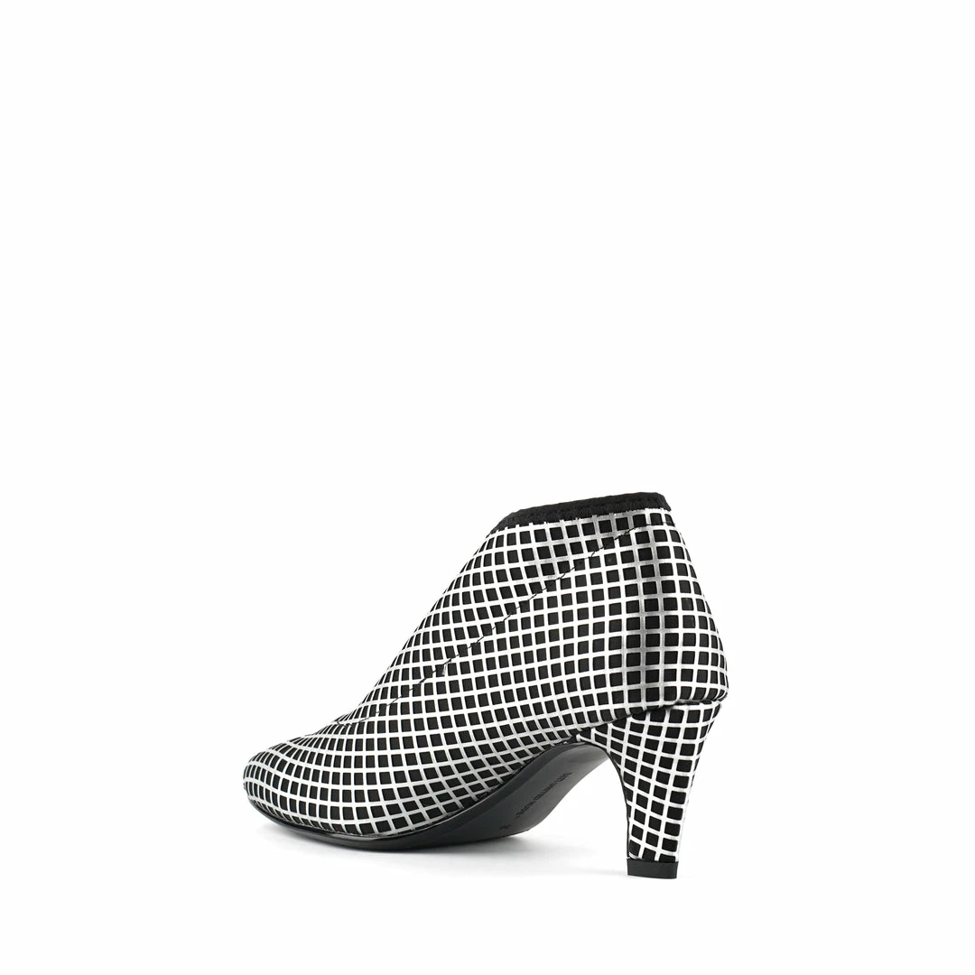 The Fold Lite Mid is a mid-heel ankle bootie with a soft almond toe and asymmetrical top line.