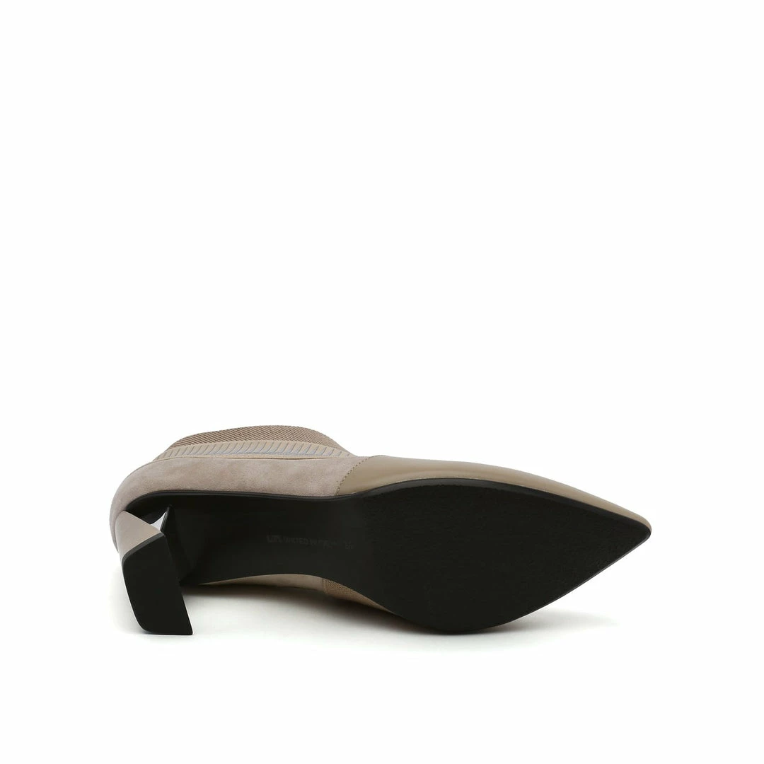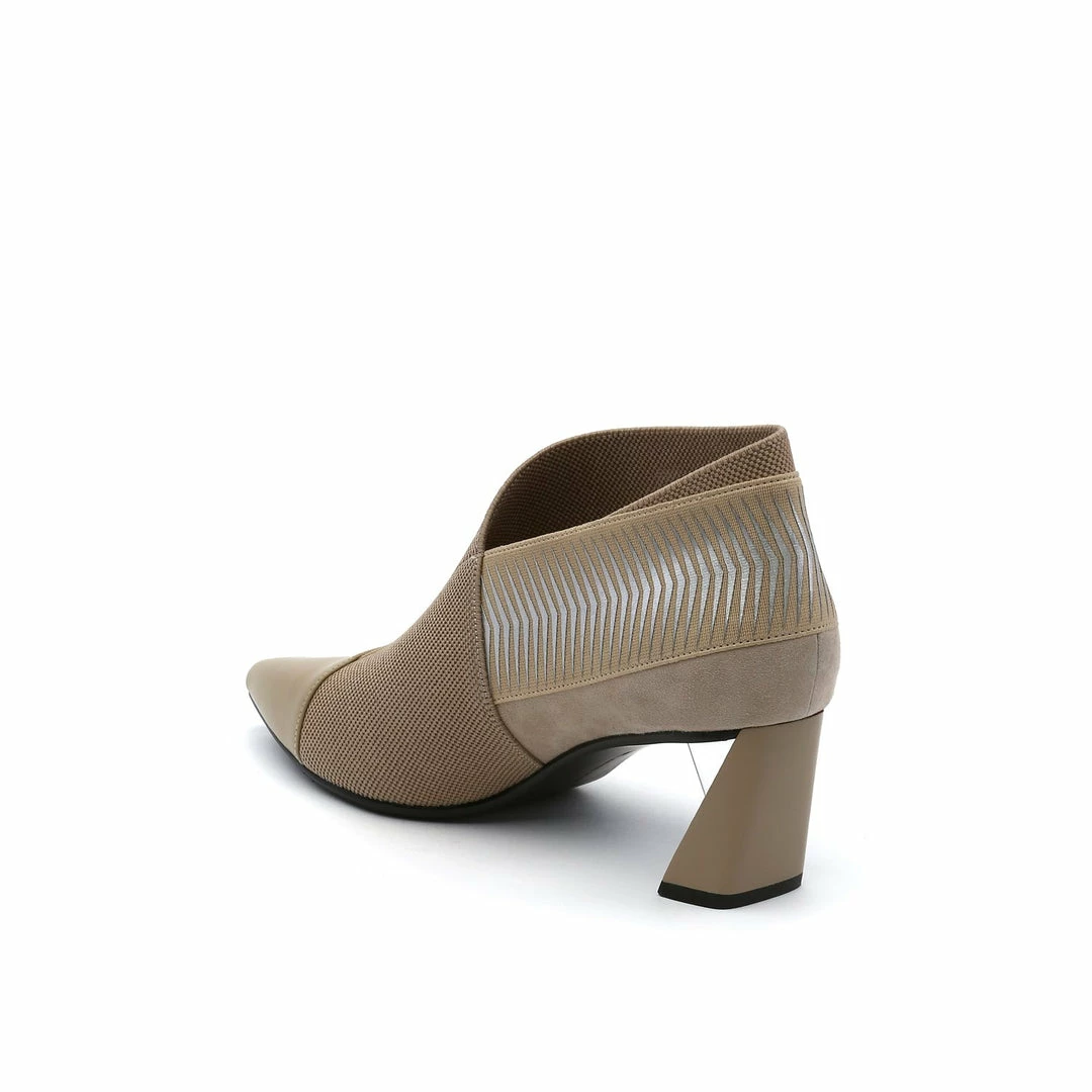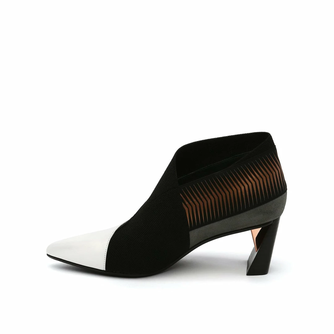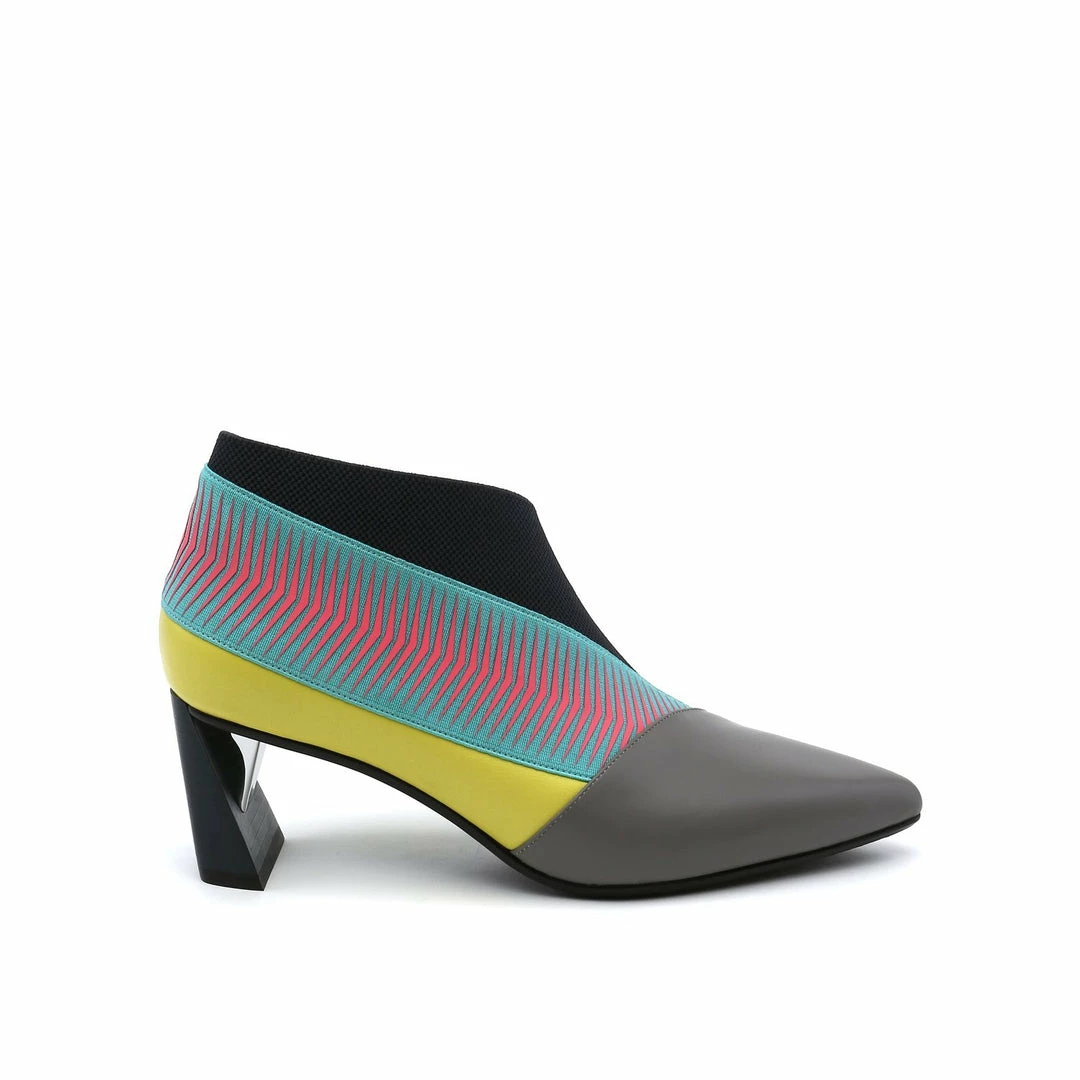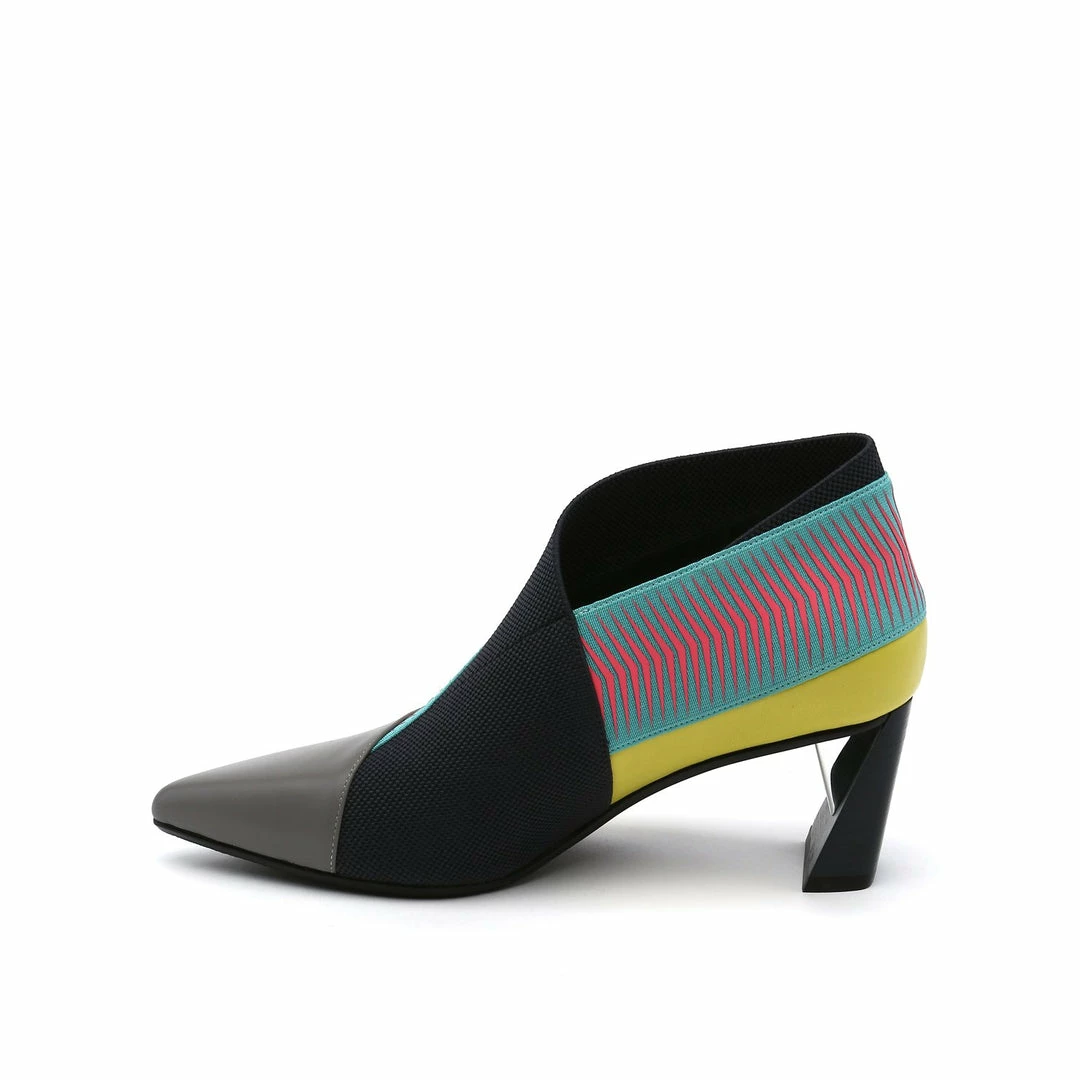 The Zink Pop Mid is a mid height pointy-toe ankle bootie that is energized with a graphic elastic band that encapsulates the foot.